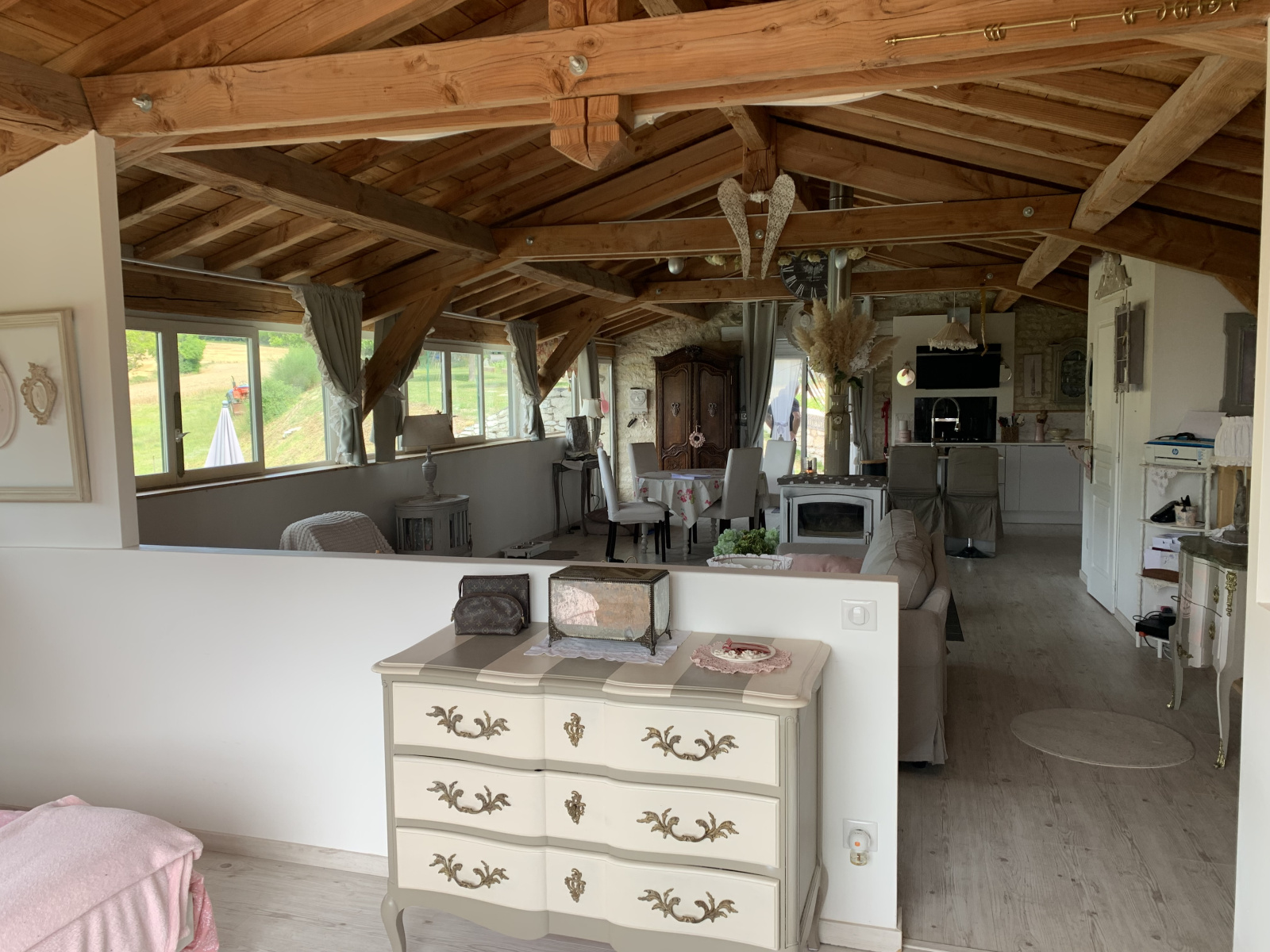 de 2 gites de 135 m² (peuvent aussi se louer en un seul grand gite), une magnifique grange en pierre aménagée en une pièce de 78 m² pouvant avoir de nombreux usages (salle de Yoga, restaurant), et 70 m² à usage d'atelier et cuisine d'été, terrasse couverte, terrasses, caves, garage et piscine chauffée. Le tout en Parfait Etat. Parking visiteurs 6 voitures