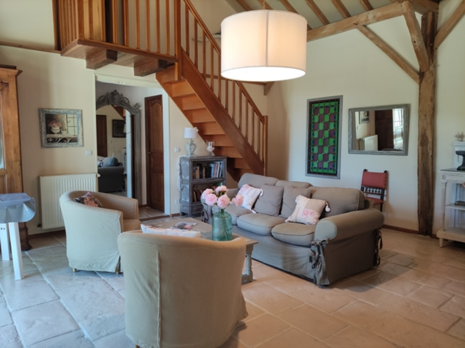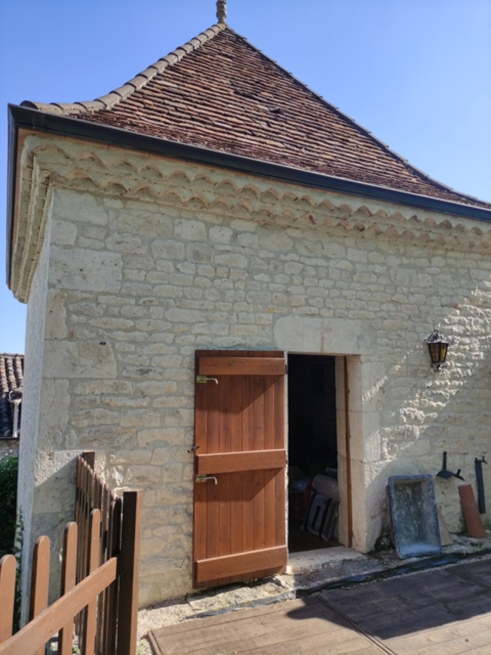 d'une maison principale de 212.5 m² avec porche d'entrée, cour intérieure,une pièce orangerie de 40 m² dallage Abbaye et cheminée pierre avec four à pain ancien, un pigeonnier (2 pièces de 15 m²)