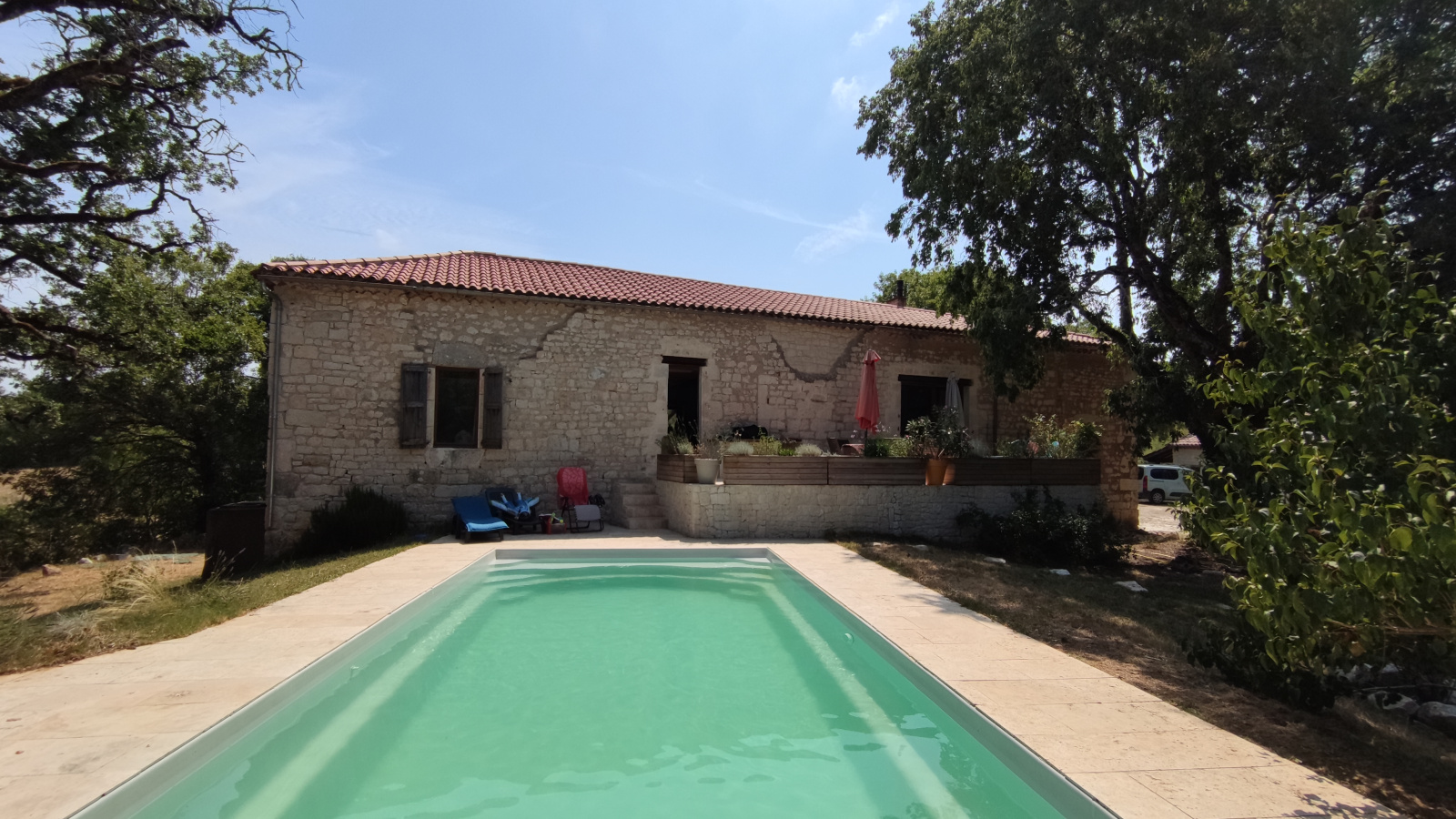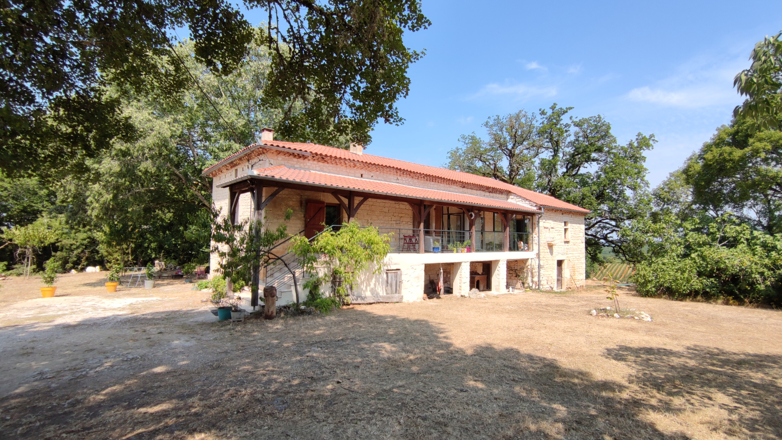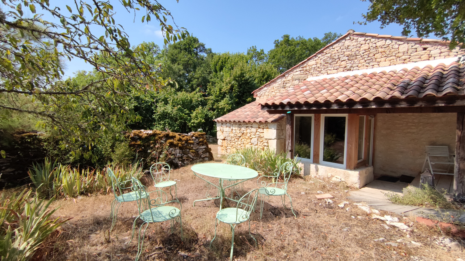 L'ensemble comprend une maison principale rénovée recemment avec goût, 103 m² habitable environ sur un même niveau, une magnifique cave voûtée 52 m² idéale pour des réceptions ou des activités de type yoga, une maison amis ou cabinet pour un therapeuthe et une chambre amis indépendante.