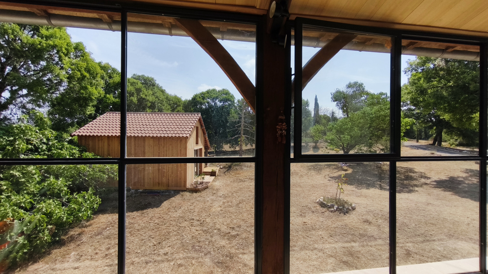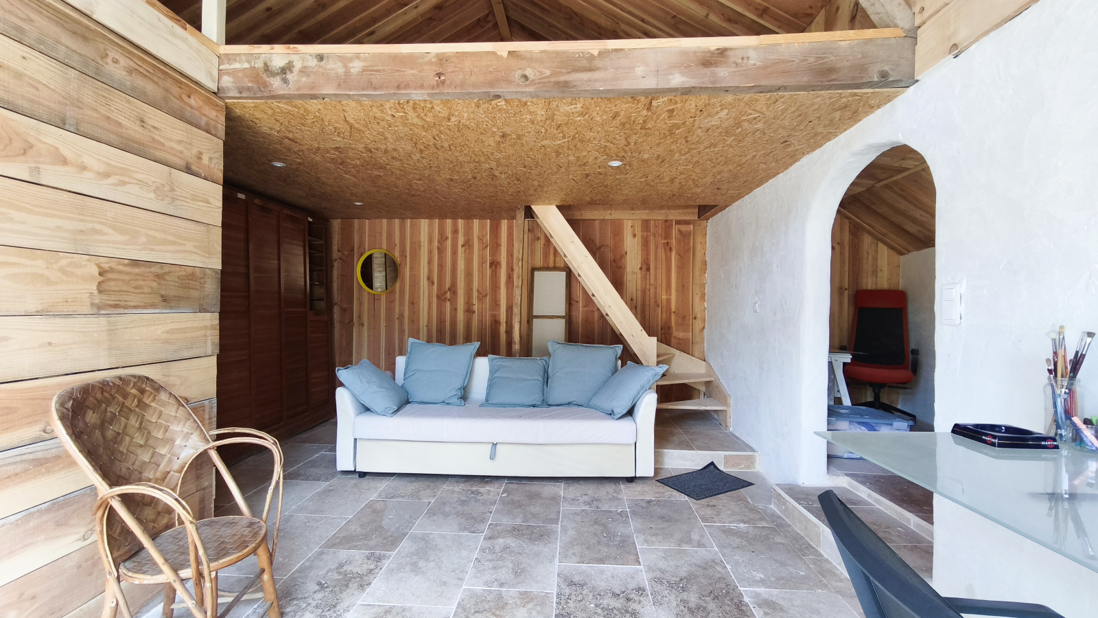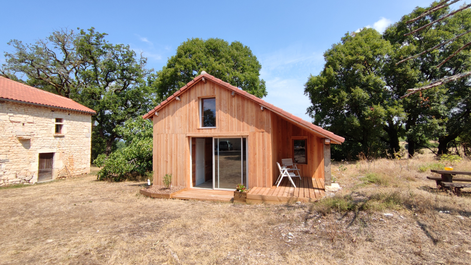 - Une chambre d'amis aménagée dans une dépendance avec bardage en bois