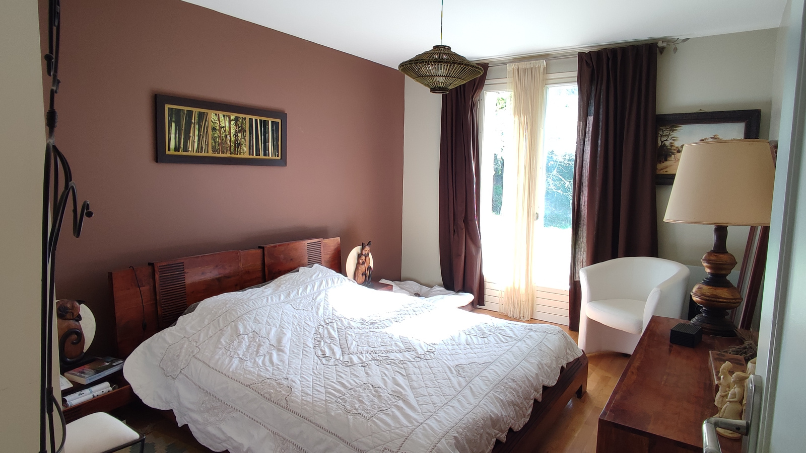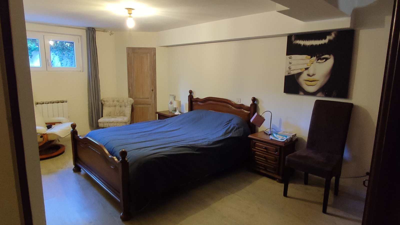Au rez-de-jardin, l’ancien garage a été transformé en un appartement indépendant offrant de nombreuses possibilités. Il comprend une grande chambre de plus de 20 m², une salle d’eau avec WC, une cuisine dinatoire, ainsi qu’un salon lumineux avec accès direct au jardin. Un atelier et un espace buanderie viennent compléter ce niveau.