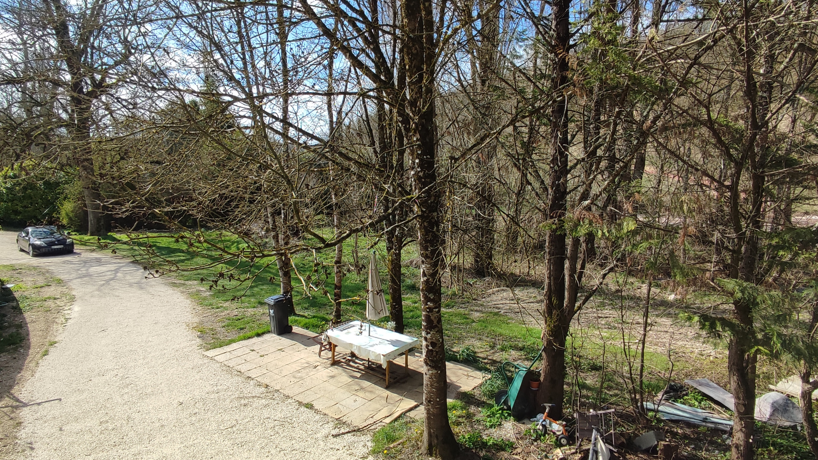 À l’extérieur, un garage d’environ 20 m² ainsi qu’un magnifique parc arboré apportent un cadre agréable et paisible.