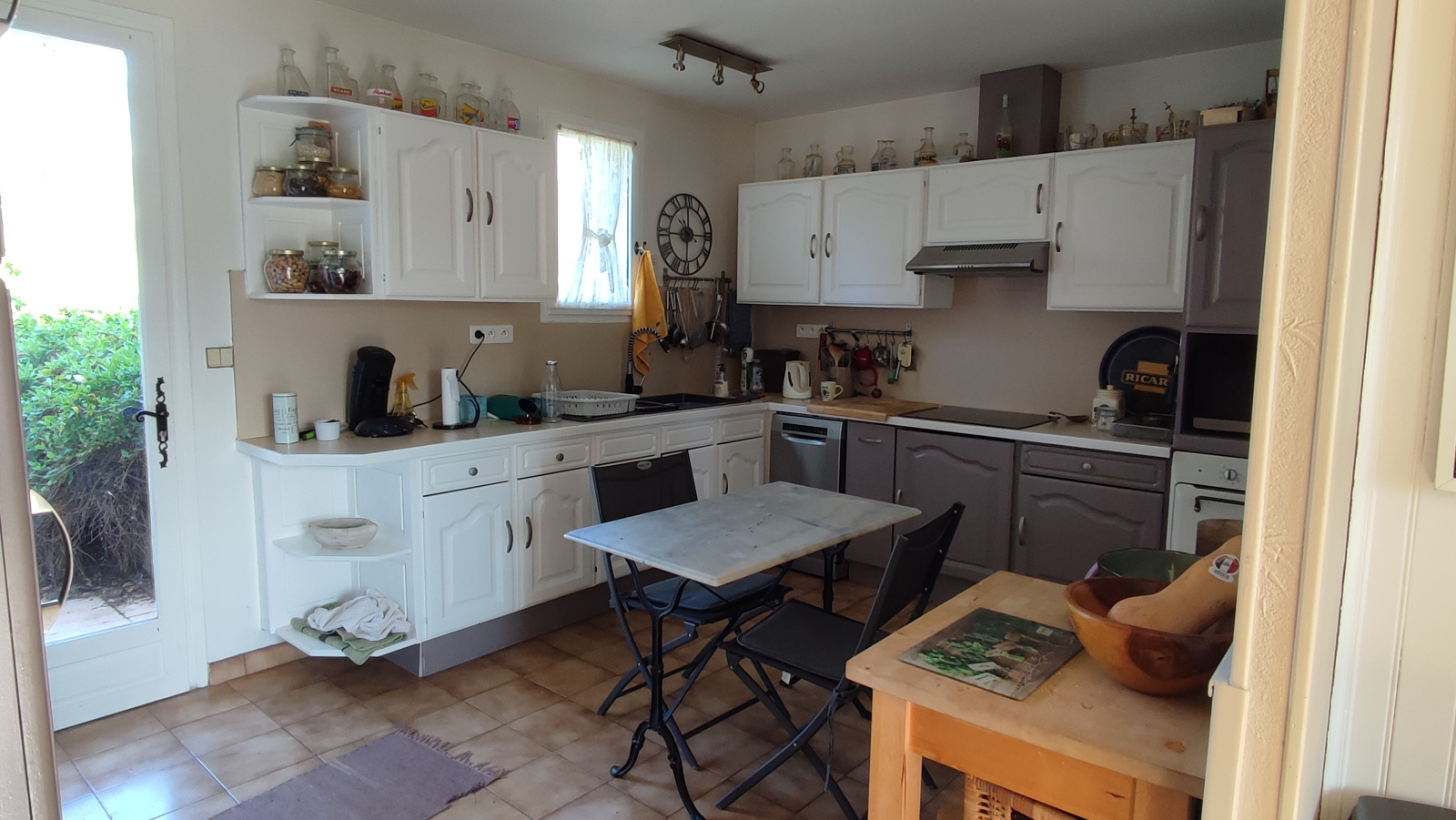 La cuisine équipée de 14 m² s’ouvre sur une seconde terrasse, parfaite pour profiter des repas en extérieur.