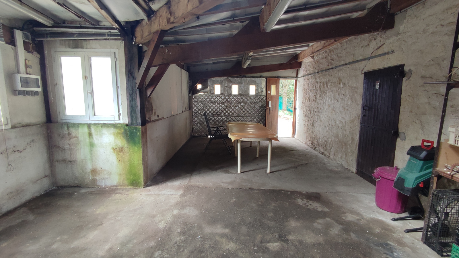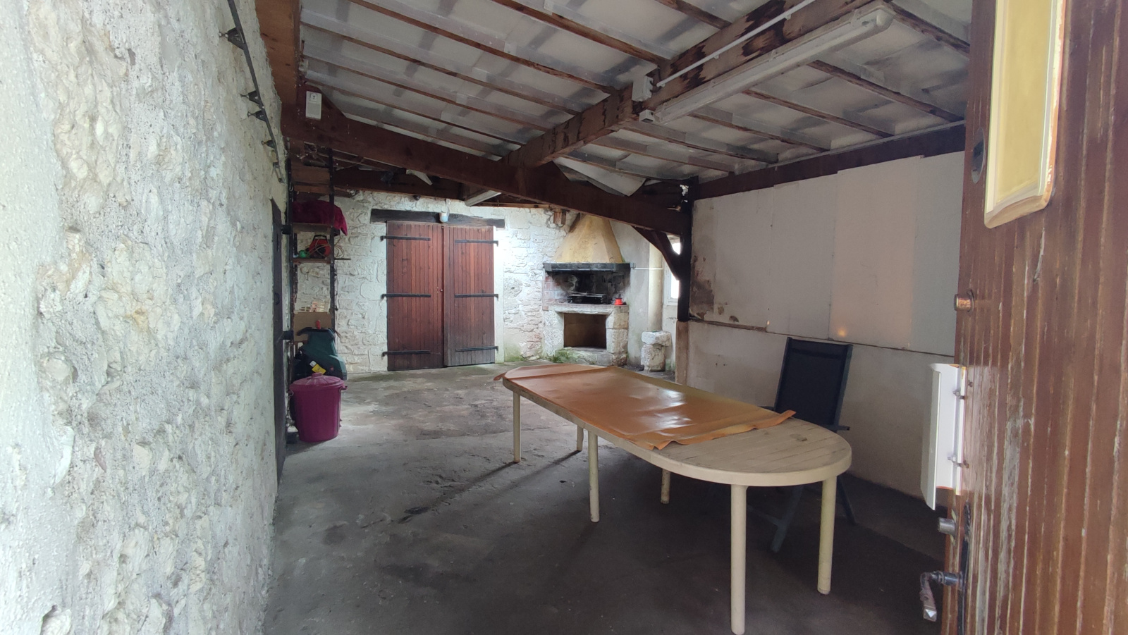 Pièce de rangement pour le bois, attenant au salon, d’environ 20m²