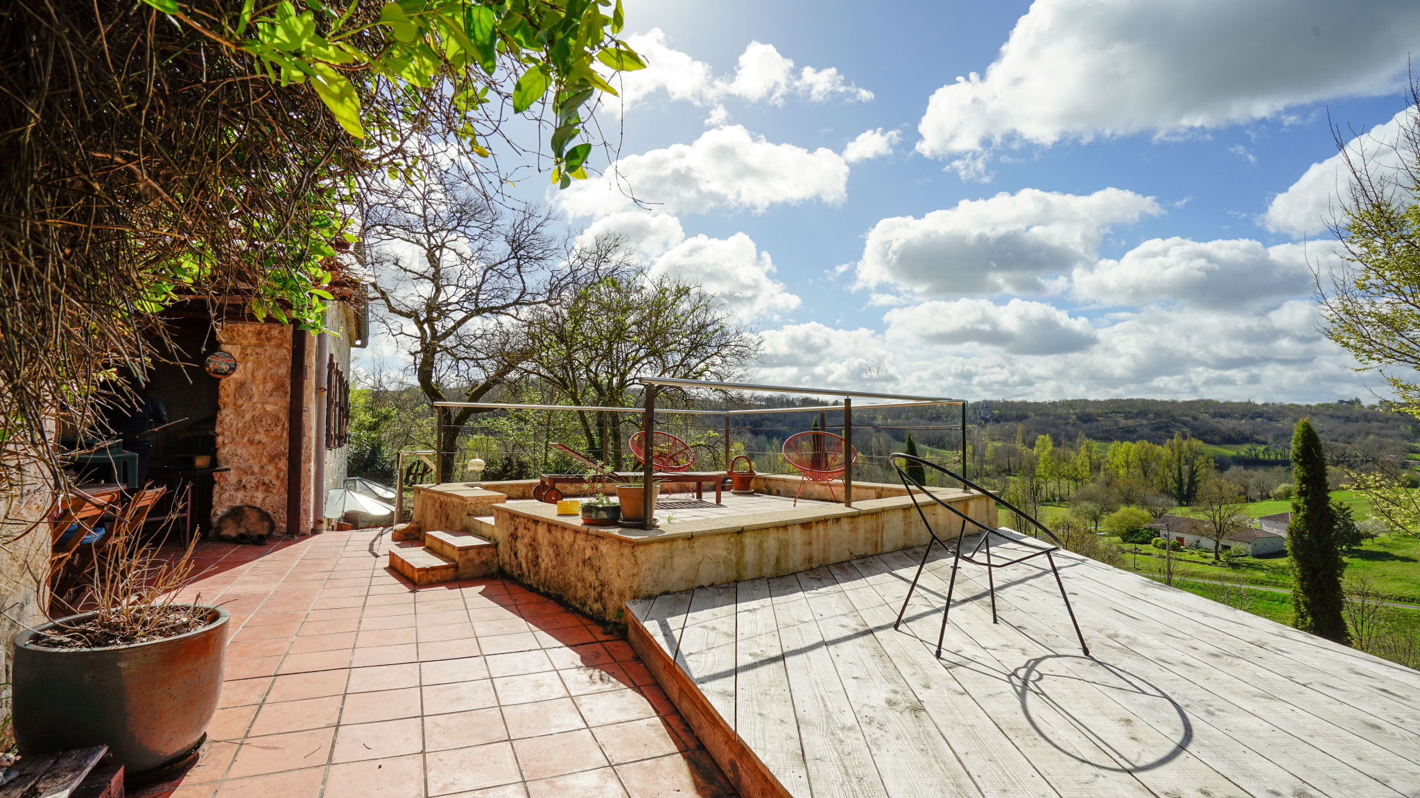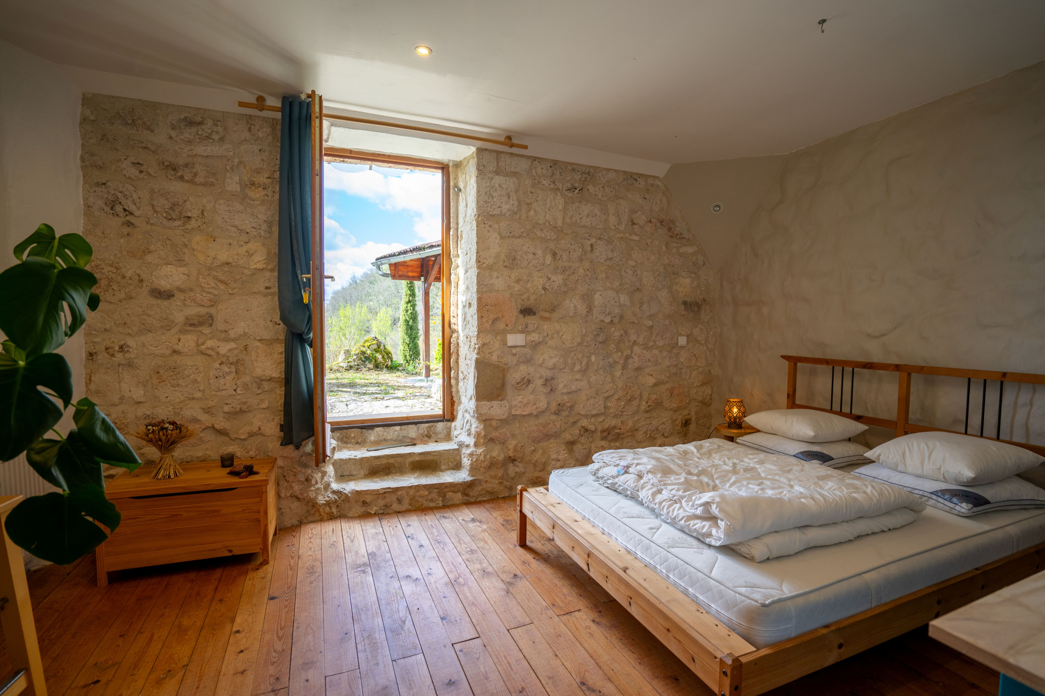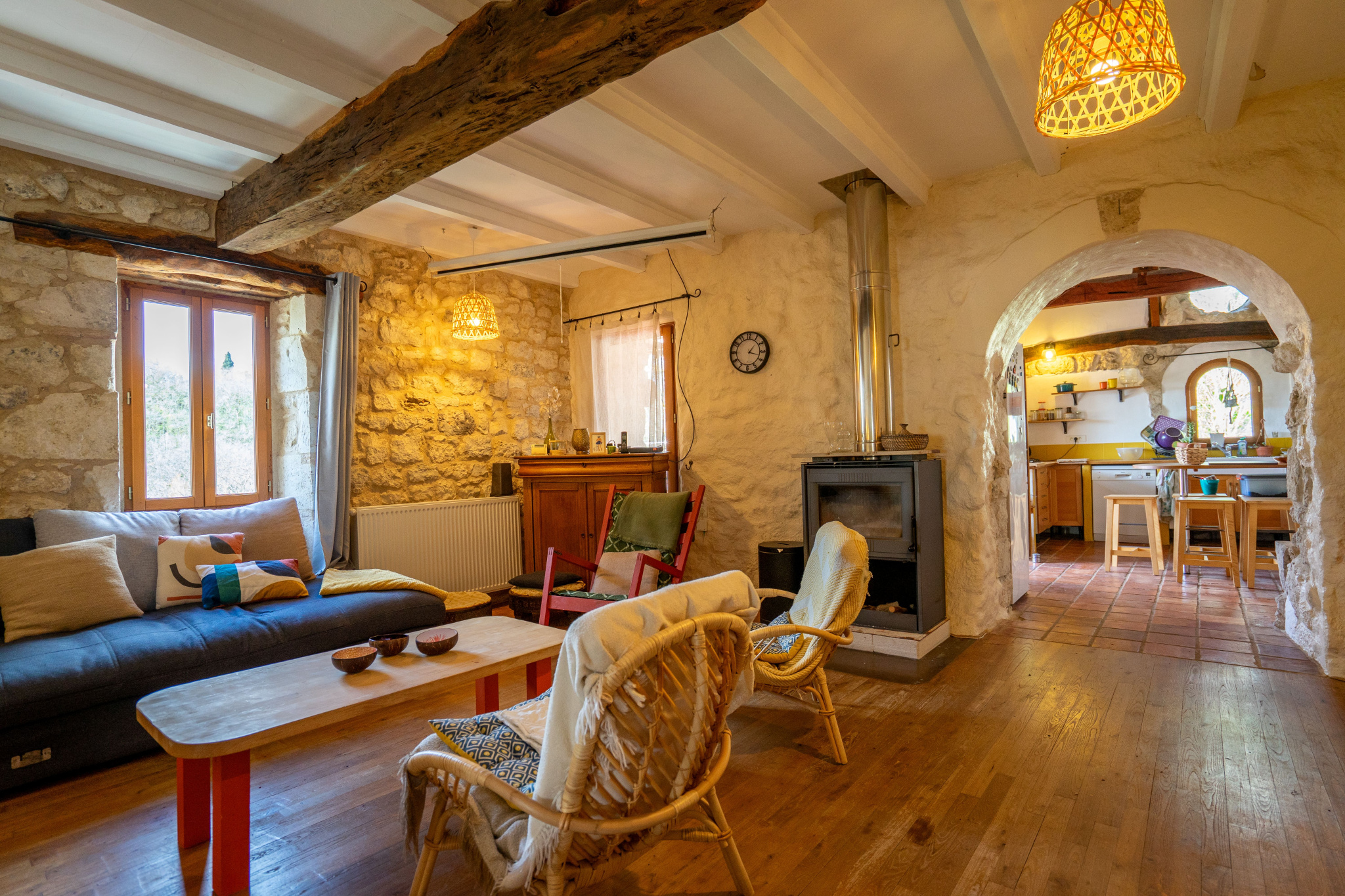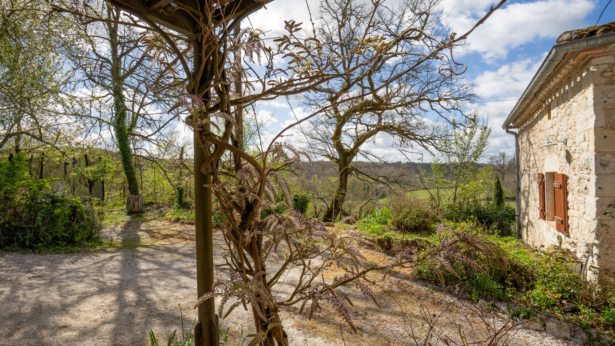 Située à flanc de coteau et exposée plein sud, cette propriété en pierre bénéficie d’un environnement calme, sans voisin ni vis-à-vis.