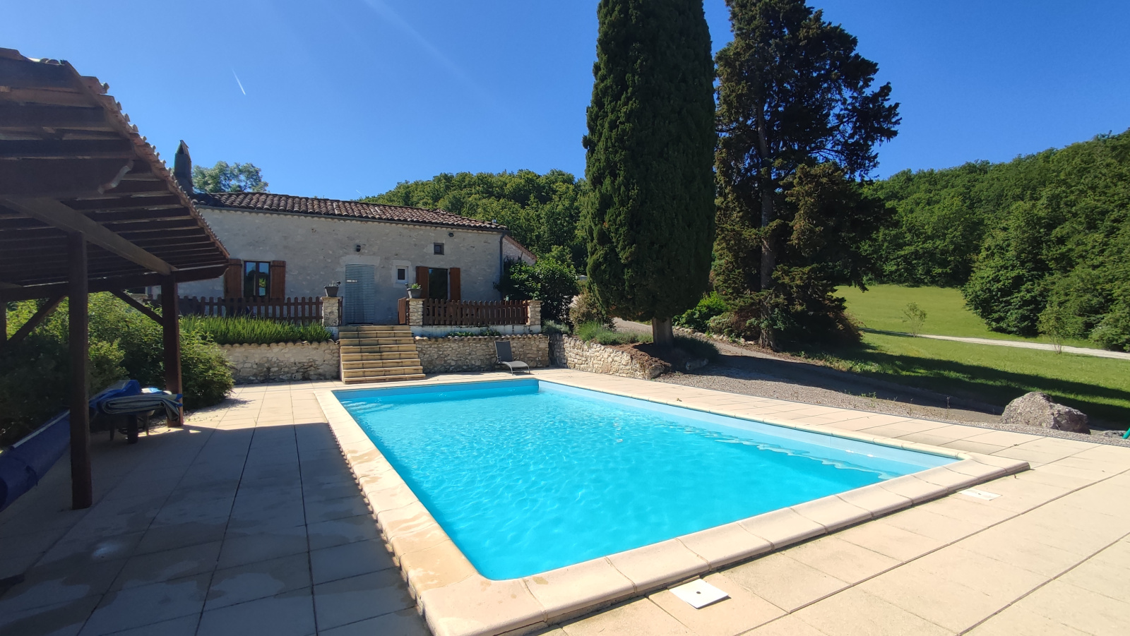 Très belle terrasse avec vue dégagée sur la piscine