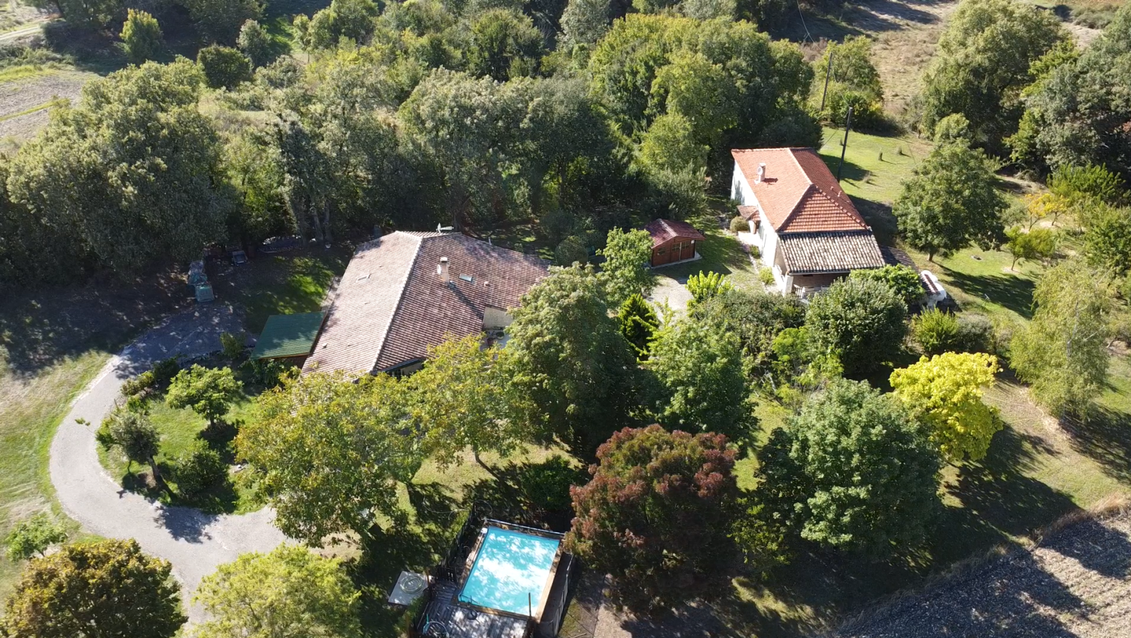 Vous trouverez au bout du chemin ces deux maisons dans leur écrin de verdure. Une petite source en contrebas alimente l'ensemble du jardin. Une grande citerne de 10 m3 est également présente. Piscine hors sol, fruitiers.