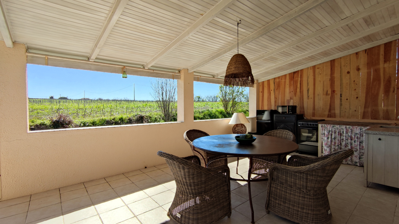 une terrasse couverte avec une cuisine été 26 m² (possibilité de fermer la terrasse pour faire une cuisine permanente), un dégagement desservant une salon de 17, 5 m², une chambre 14, 8 m² et une salle d'eau wc 6,2 m²
