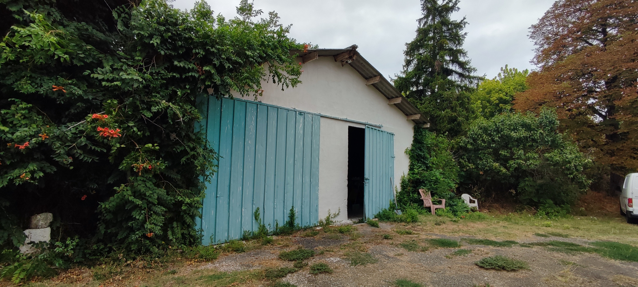 Hauvent métallique de 100 m² (ancienne aire de stockage pour engins agricoles, très grande hauteur)