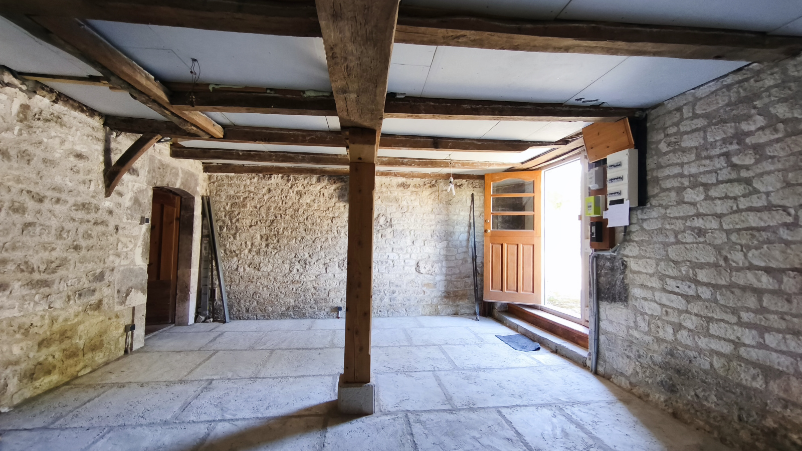 Une grange en pierre comprenant une partie garage 52 m², un atelier 25 m²
