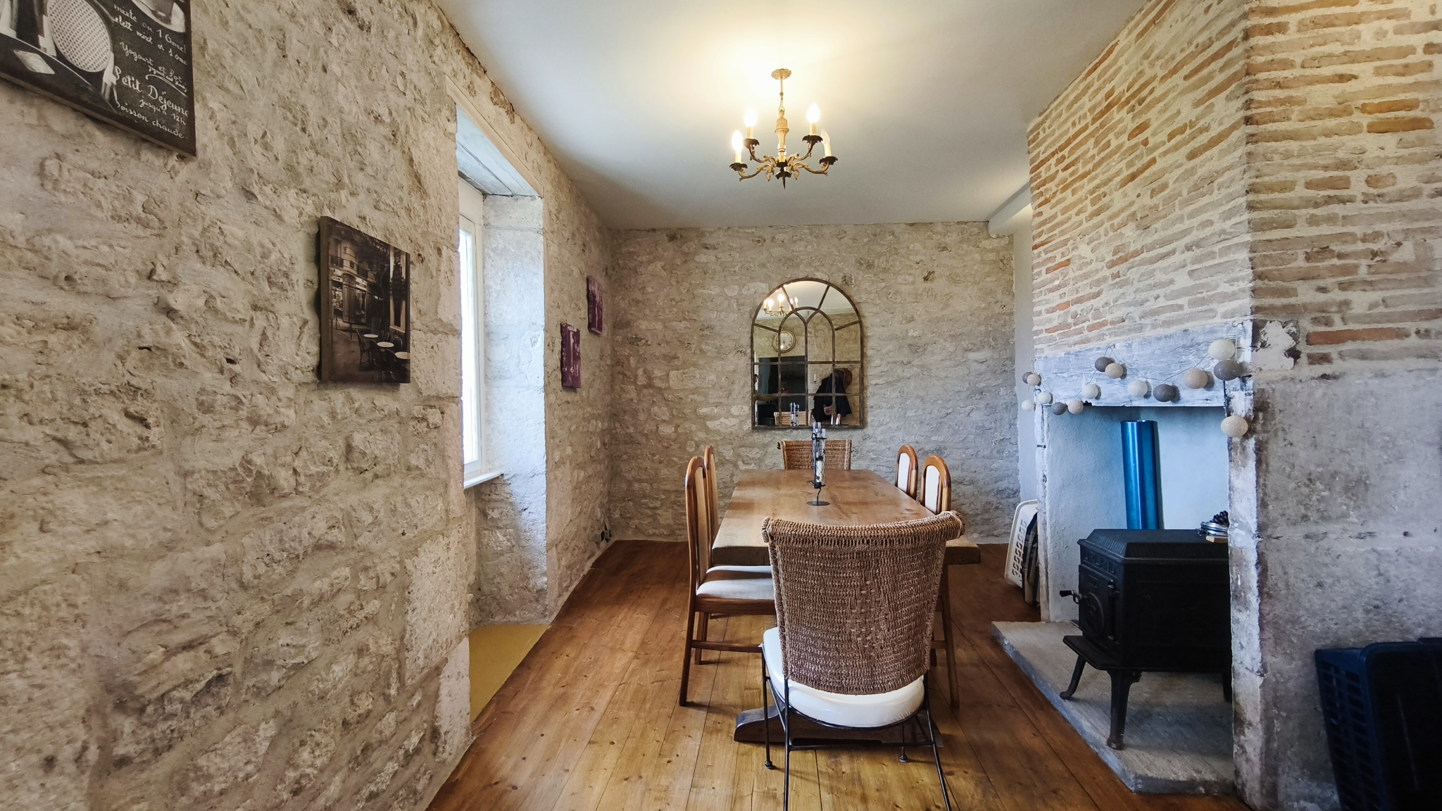 Huisseries en simple vitrage et double vitrage bois, 2 poêles à bois, fosse septique non conforme