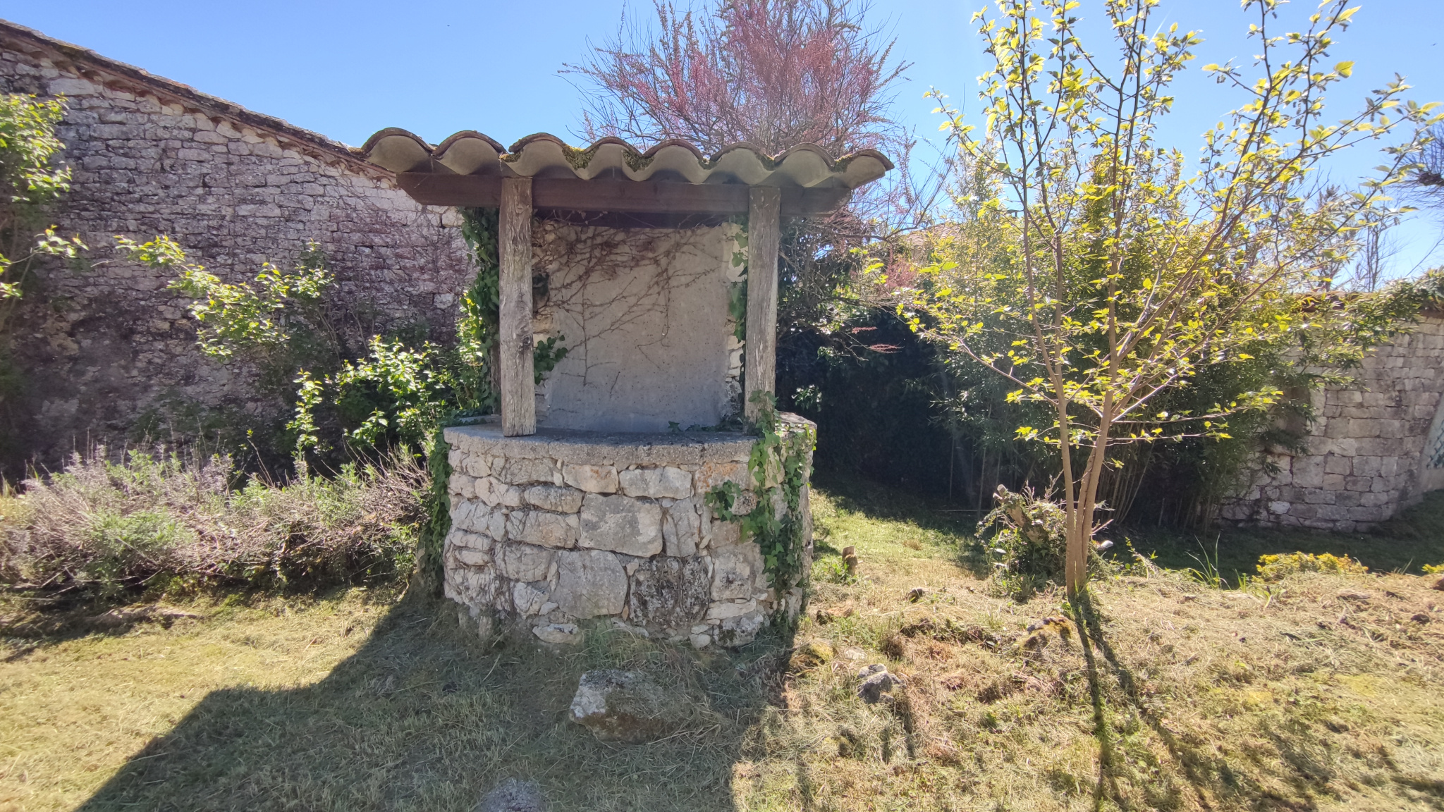 Joli jardin clos de mur 1350 m² avec un puits