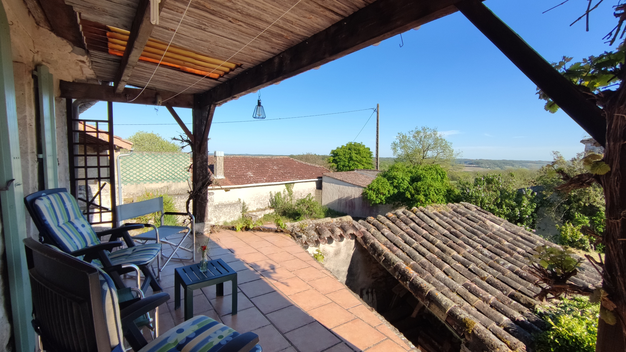 Accès par des escaliers extérieurs donnant sur une terrasse couverte avec une jolie vue exposé Sud