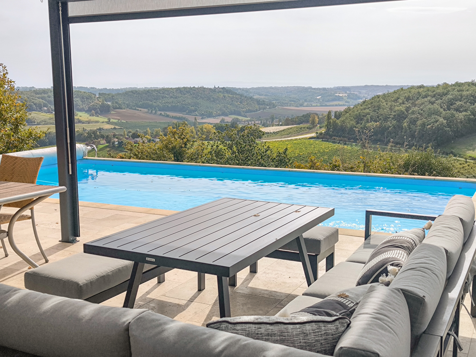 Cette charmante maison en plain-pied, exposée plein sud avec de belles vues sur les Pyrénées, a été entièrement rénovée. La maison de deux chambres et deux salles de bains est située bien en retrait de la route, ce qui garantit une intimité totale et de nombreuses places de parking. Il y a deux terrasses, toutes deux avec pergolas, assurant ainsi beaucoup d'ombre. La piscine offre une vue sublime sur la vallée jusqu'au Château de Cazes Mondenard. Du lever au coucher du soleil, la maison offre des vues toujours changeantes sur ce magnifique coin du sud-ouest de la France avec le chant des oiseaux et le calme de la campagne. La maison est équipée de panneaux photovoltaiques.