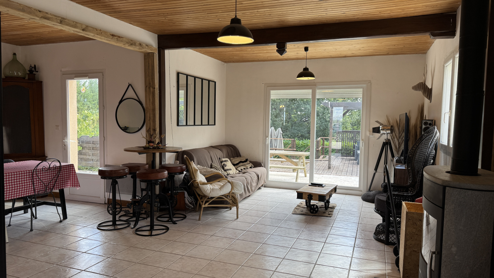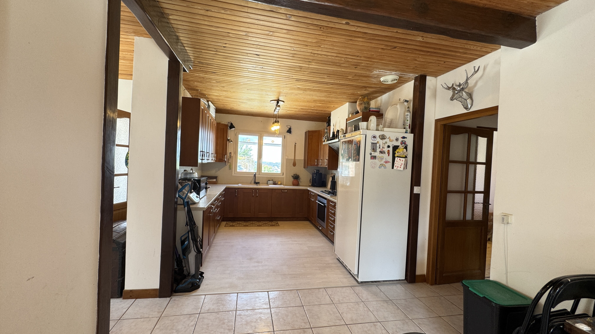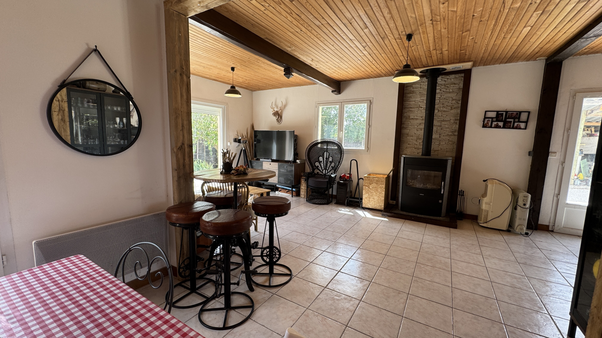 Avec ses 142 m² habitables, cette maison vous séduira par son agencement fonctionnel et sa belle luminosité. Elle se compose d’une entrée spacieuse menant à un vaste salon/séjour de plus de 35 m², exposé plein sud, baigné de lumière naturelle et agrémenté d’un poêle à bois performant, idéal pour les soirées d’hiver.