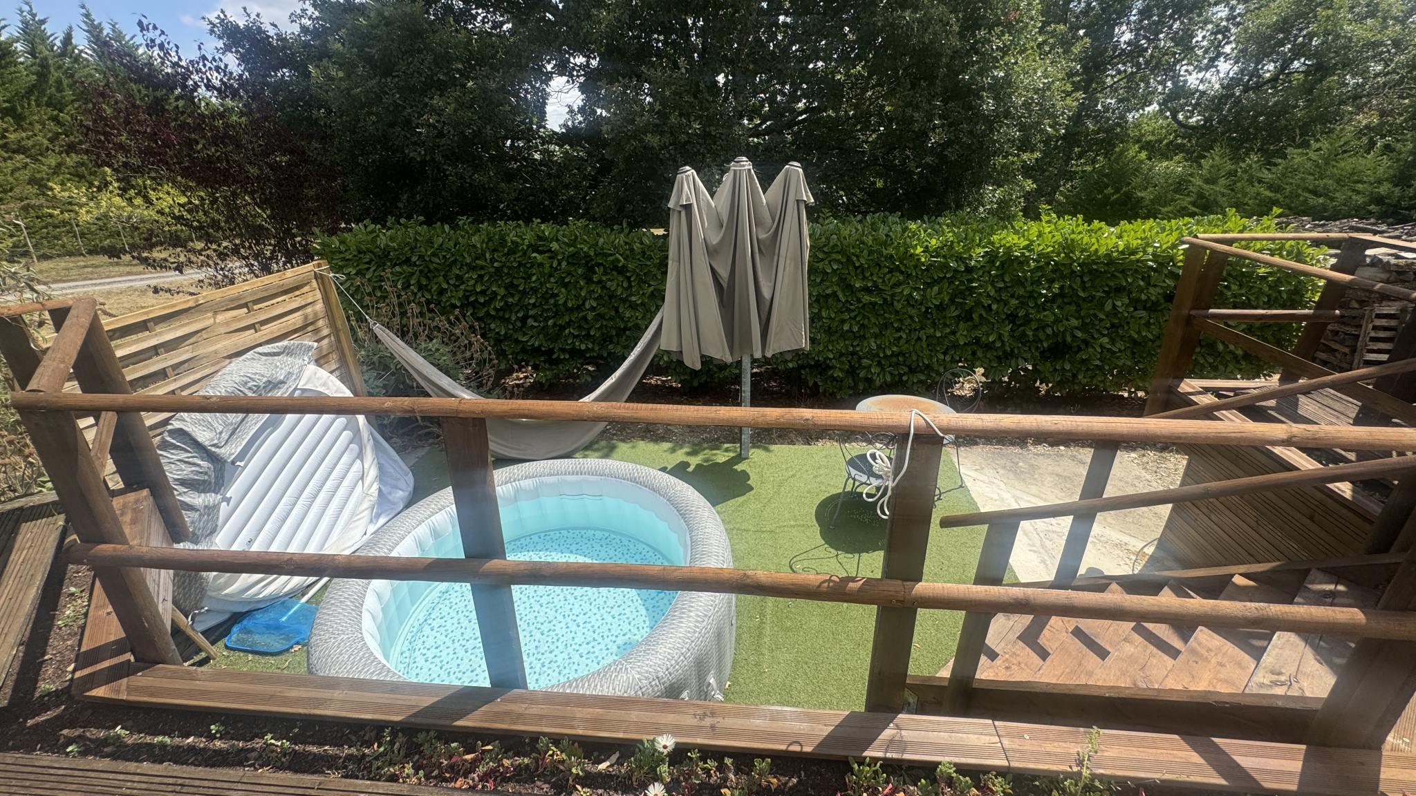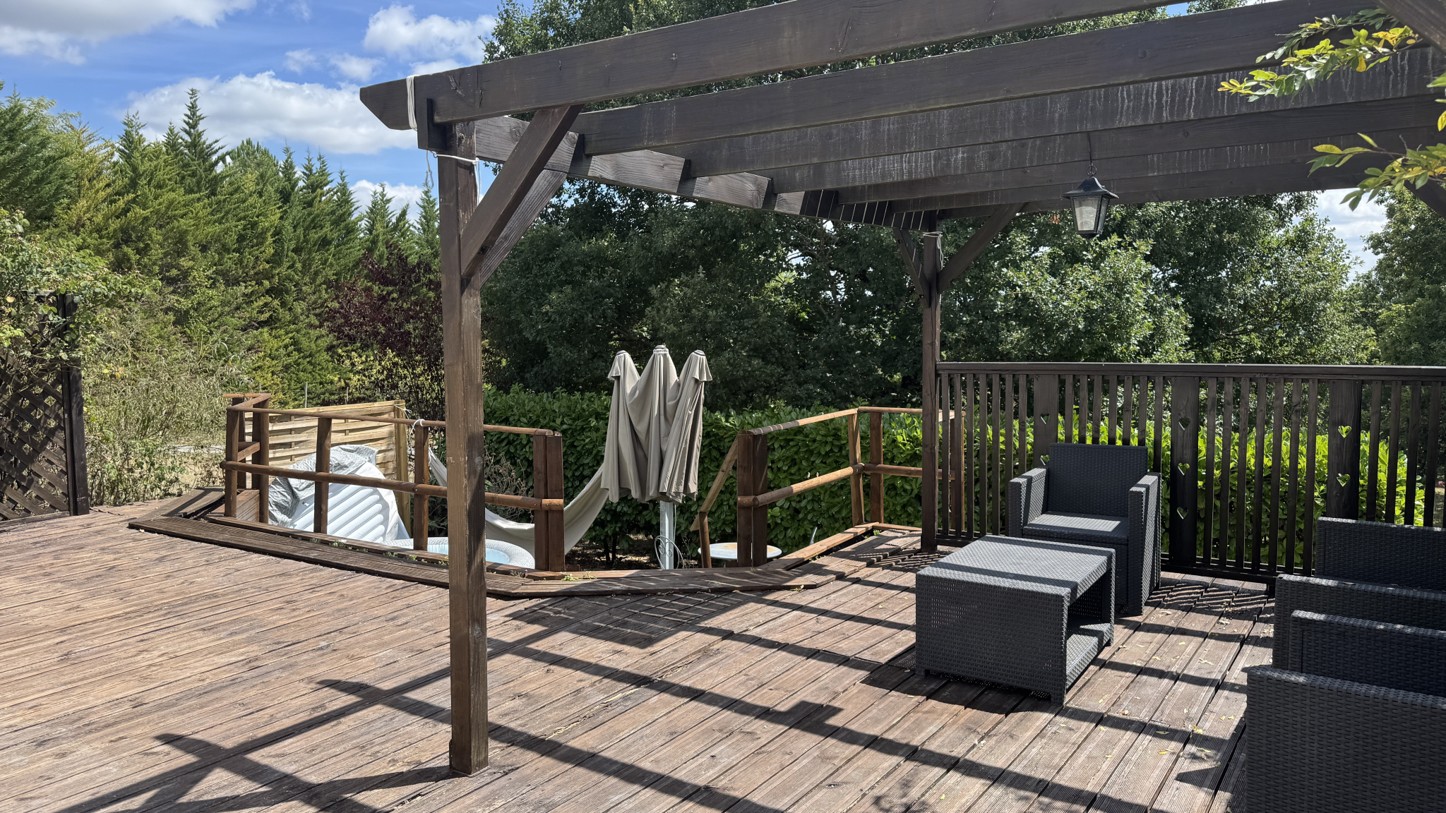 Extérieurs pensés pour la détente et les loisirs : Profitez d’une grande terrasse bien exposée, de deux abris de jardin, d’un poulailler et d’un environnement verdoyant, propice à la détente et à la nature.