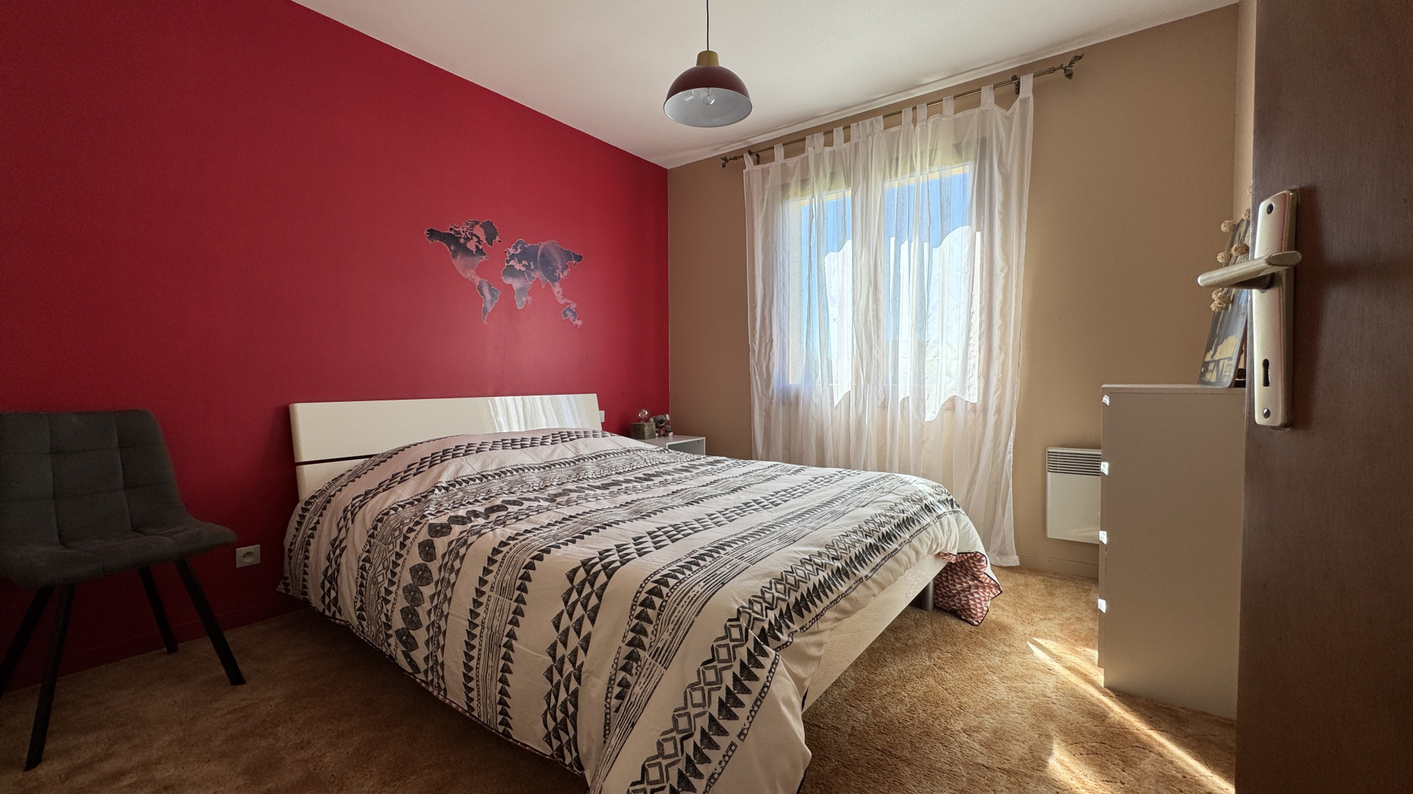 Elle se compose d’une belle pièce de vie lumineuse, d’une cuisine séparée, de 4 chambres, d’une salle de bain, de WC indépendants ainsi que d’un garage.