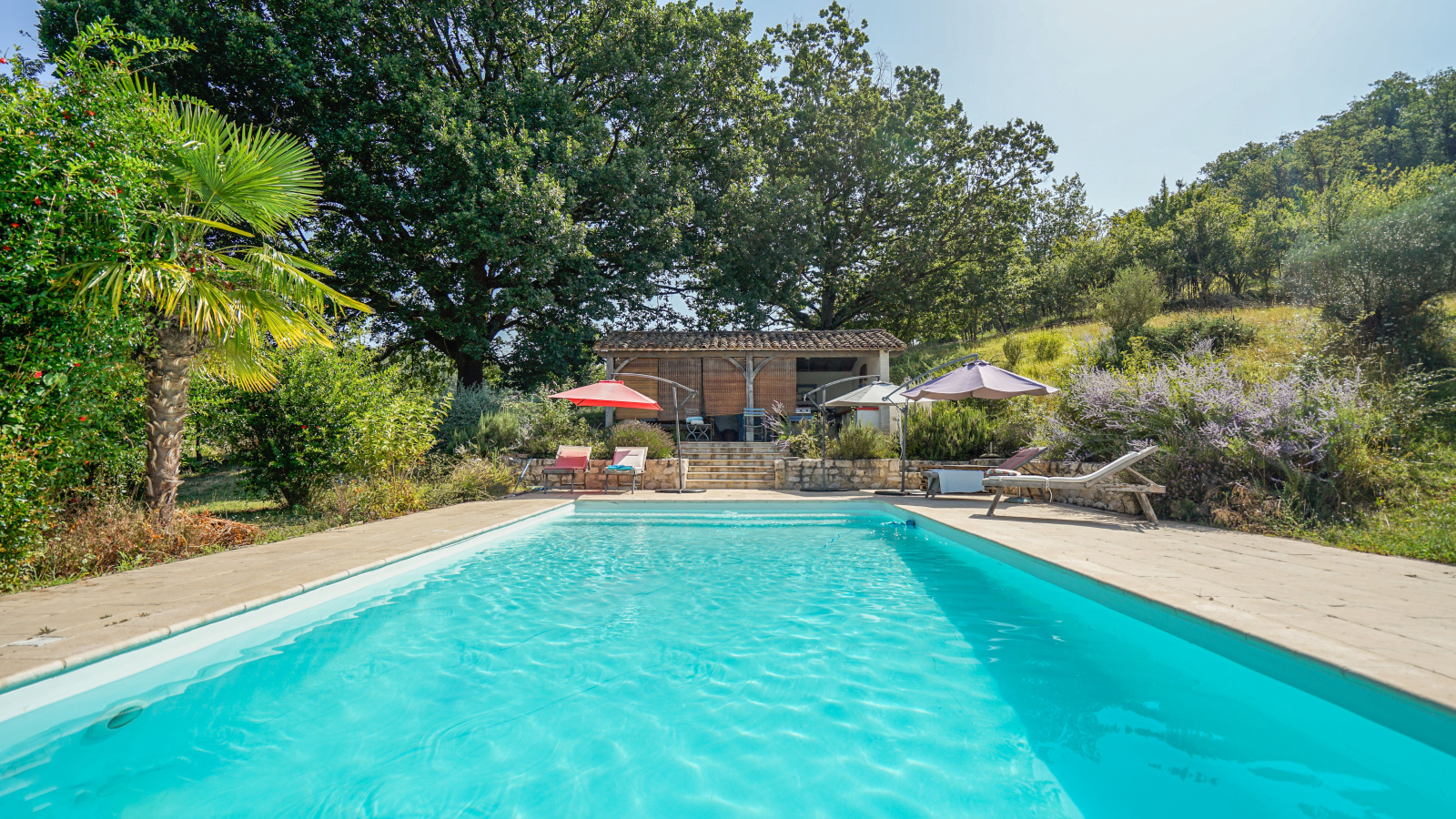 Piscine 11 x5 m, au sel avec cuisine été sous auvent