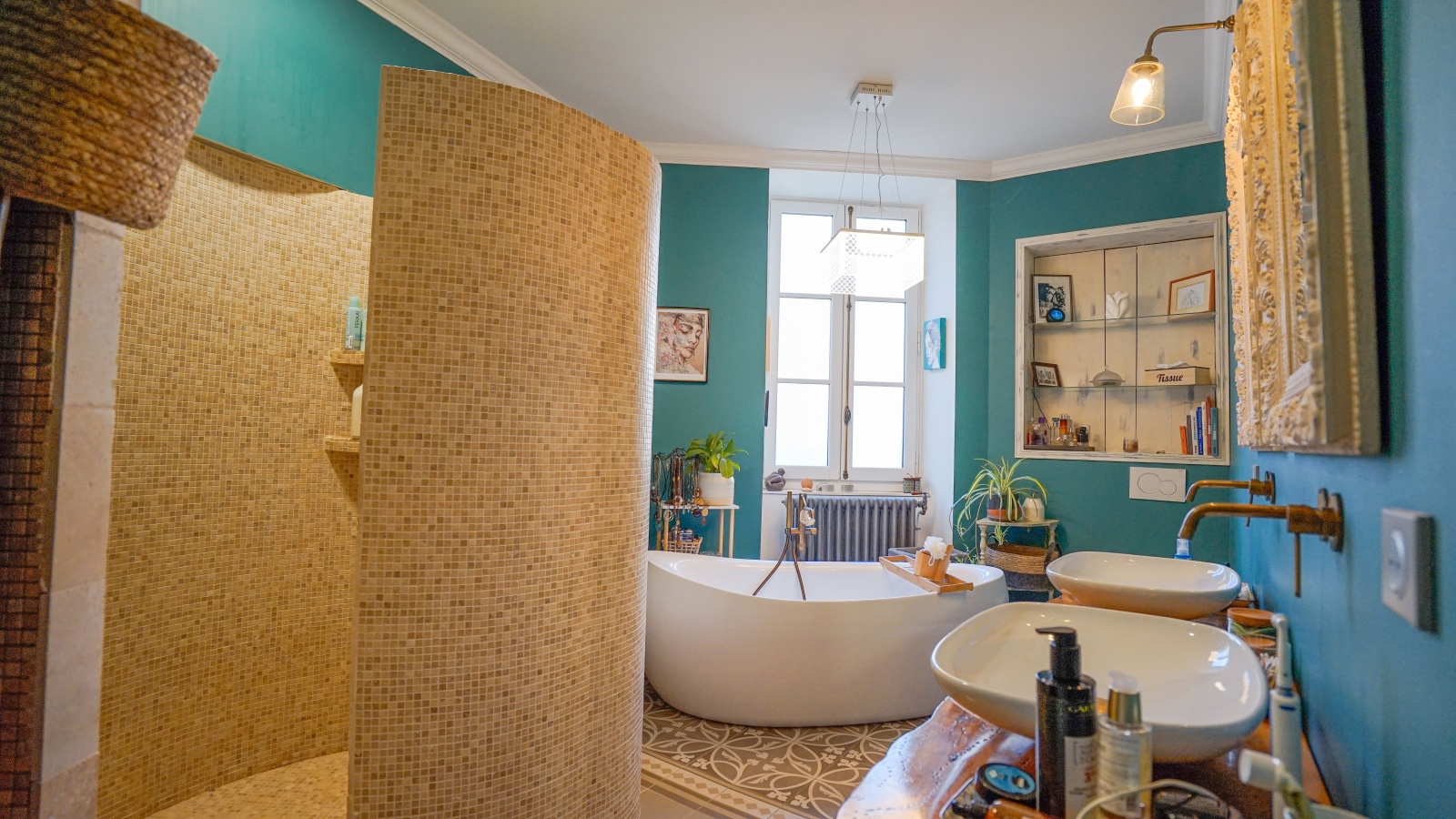 - Salle de bain : 7 m², avec lavabo double vasque et douche