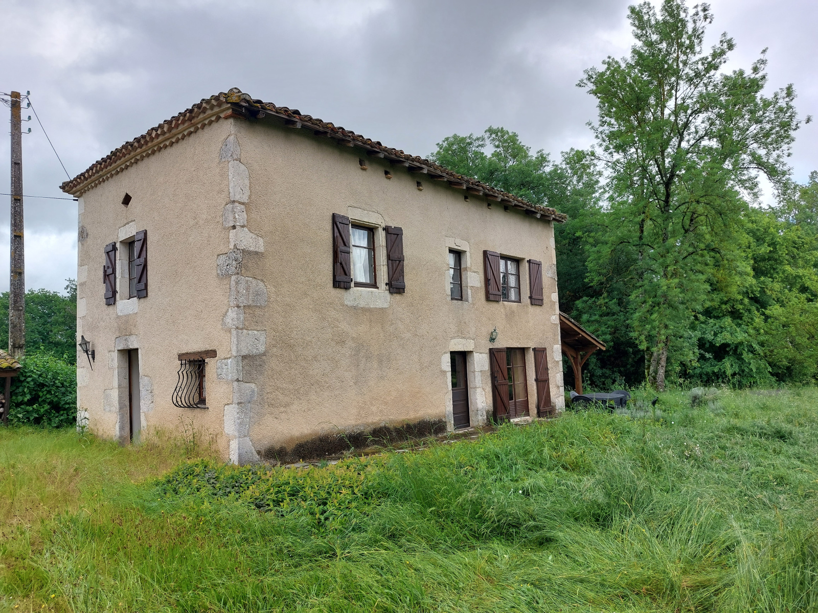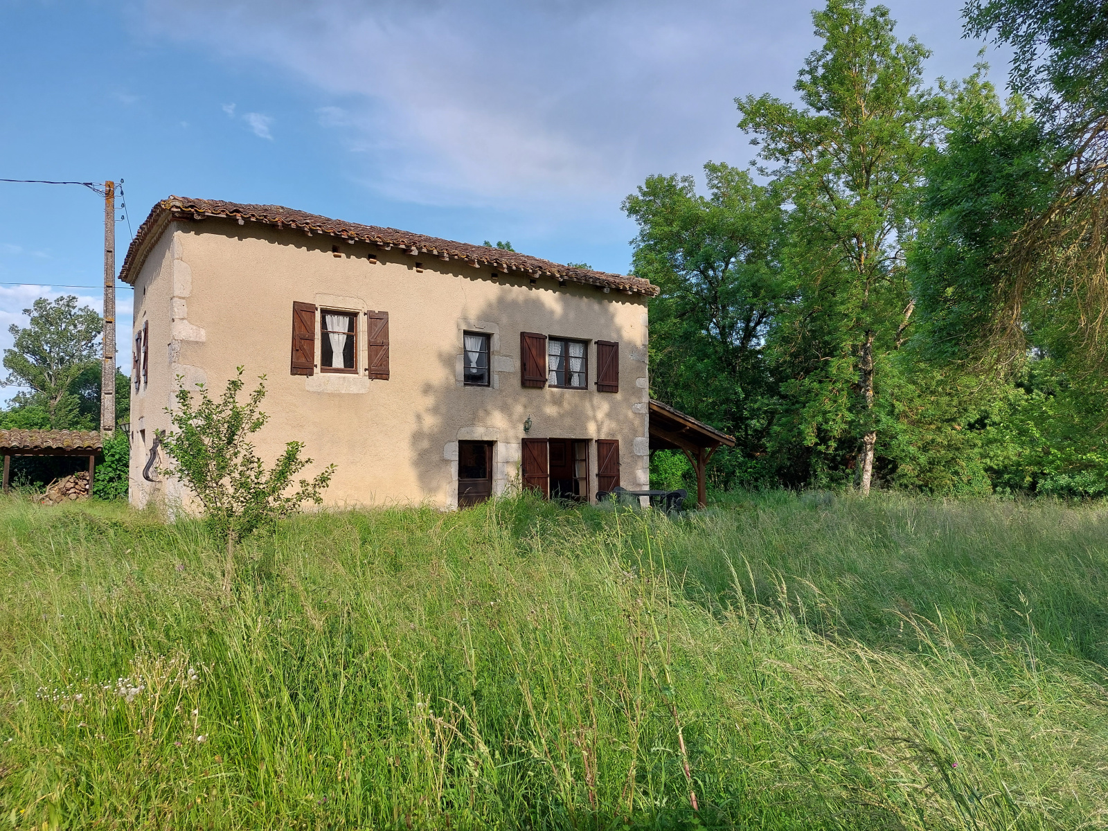 Belle maison en pierre de 90 m² (trois chambres) sur deux niveaux dans un environnement très campagne. Double garage de construction contemporaine 34 m². Terrain plat de 4165 m² entourré d'arbres matures et bordé par un petit ruisseau. Puits