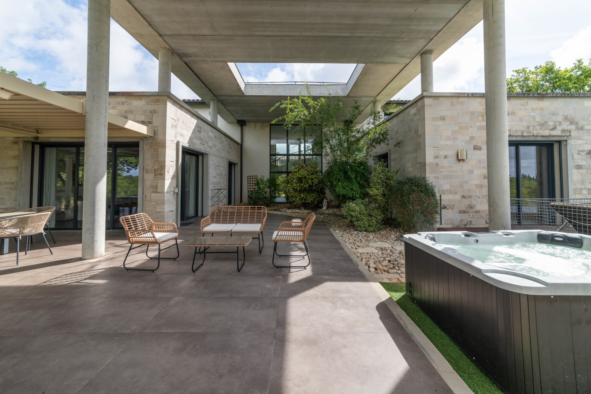 Cette magnifique maison d’architecte de 287 m² allie avec élégance le charme authentique du Sud-Ouest et le confort contemporain.